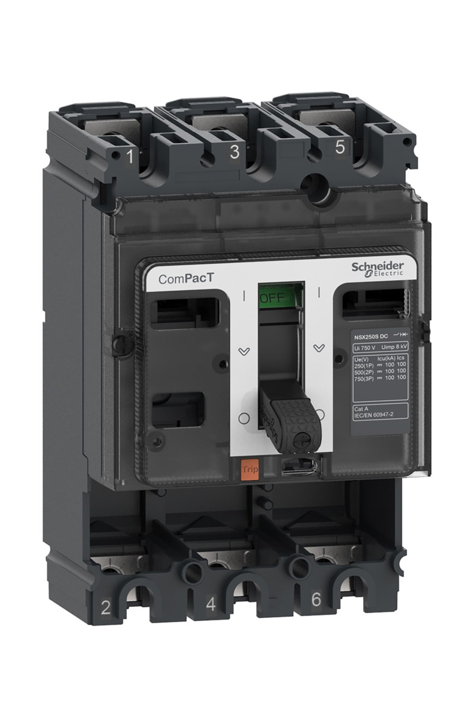 Schneider Kompakt Şalter Ürün Özellikleri Ürün adı : ComPacT NSX DC yeni jenerasyon Ürün grubu : NSX100F DC Ürün ya da bileşen tipi : Temel çerçeve Cihaz uygulaması : Dağıtım Kutup tanımı : 3P [In] nominal akım : 100 A -de 40 °C [Ue] nominal çalışma voltajı : 750 V DC 'e uygun IEC 60947-2 Şebeke tipi : DC Kullanım kategorisi : Kategori A [Icu] Anma nihai kısa devre kesme kapasitesi : 36 kA Icu -de 250 V DC 1P 'e uygun IEC 60947-2 Performans seviyesi : F 36 kA 750 V DC Kontrol tipi : Geçiş Montaj Tipi : Sabit Tamamlayıcı Özellikler [Ui] nominal yalıtım voltajı : 750 V DC 'e uygun IEC 60947-2 [Uimp] nominal darbe dayanım voltajı : 8 kV 'e uygun IEC 60947-2 [Ics] Nominal hizmet kısa devre kesme kapasitesi : 36 kA -de 250 V DC 'e uygun IEC 60947-2 (1P) Maksimum kesme süresi : 10 ms Mekanik dayanıklılık : 10000 Döngü uygun IEC 60947-2 Montaj desteği : Arka plaka Üst bağlantı : Ön Aşağı bağlantı : Ön Bağlantı aralığı : 35 mm Koruma türü : Koruma olmadan Genişlik (w) : 105 mm Yükseklik (h) : 161 mm Derinlik (D) : 86 mm Ortam Koşulları Standartlar : IEC 60947-2 Ürün sertifikaları : ASEFA KEMA LCIE ASTA Kirletme derecesi : 3 'e uygun IEC 60664-1 IP koruma derecesi : IP40 'e uygun IEC 60529 Nominal çalışma ortam sıcaklığı : -25…70 °C Depolama ortam koşulları : -50…85 °C