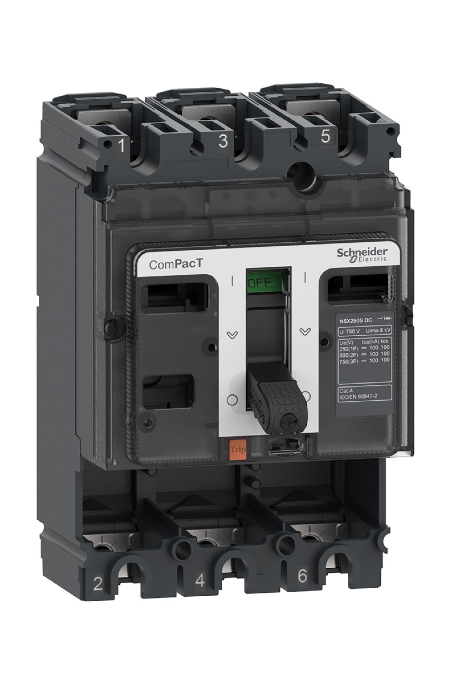 Schneider Kompakt Şalter Ürün Özellikleri Ürün adı : ComPacT NSX DC yeni jenerasyon Ürün grubu : NSX100S DC Ürün ya da bileşen tipi : Temel çerçeve Cihaz uygulaması : Dağıtım Kutup tanımı : 3P [In] nominal akım : 100 A -de 40 °C [Ue] nominal çalışma voltajı : 750 V DC 'e uygun IEC 60947-2 Şebeke tipi : DC Kullanım kategorisi : Kategori A [Icu] Anma nihai kısa devre kesme kapasitesi : 100 kA Icu -de 250 V DC 1P 'e uygun IEC 60947-2 Performans seviyesi : S 100 kA 750 V DC Kontrol tipi : Geçiş Montaj Tipi : Sabit Tamamlayıcı Özellikler [Ui] nominal yalıtım voltajı : 750 V DC 'e uygun IEC 60947-2 [Uimp] nominal darbe dayanım voltajı : 8 kV 'e uygun IEC 60947-2 [Ics] Nominal hizmet kısa devre kesme kapasitesi : 100 kA -de 250 V DC 'e uygun IEC 60947-2 (1P) Maksimum kesme süresi : 10 ms Mekanik dayanıklılık : 10000 Döngü uygun IEC 60947-2 Montaj desteği : Arka plaka Üst bağlantı : Ön Aşağı bağlantı : Ön Bağlantı aralığı : 35 mm Koruma türü : Koruma olmadan Genişlik (w) : 105 mm Yükseklik (h) : 161 mm Derinlik (D) : 86 mm Ortam Koşulları Standartlar : IEC 60947-2 Ürün sertifikaları : ASTA ASEFA KEMA LCIE Kirletme derecesi : 3 'e uygun IEC 60664-1 IP koruma derecesi : IP40 'e uygun IEC 60529 Nominal çalışma ortam sıcaklığı : -25…70 °C Depolama ortam koşulları : -50…85 °C