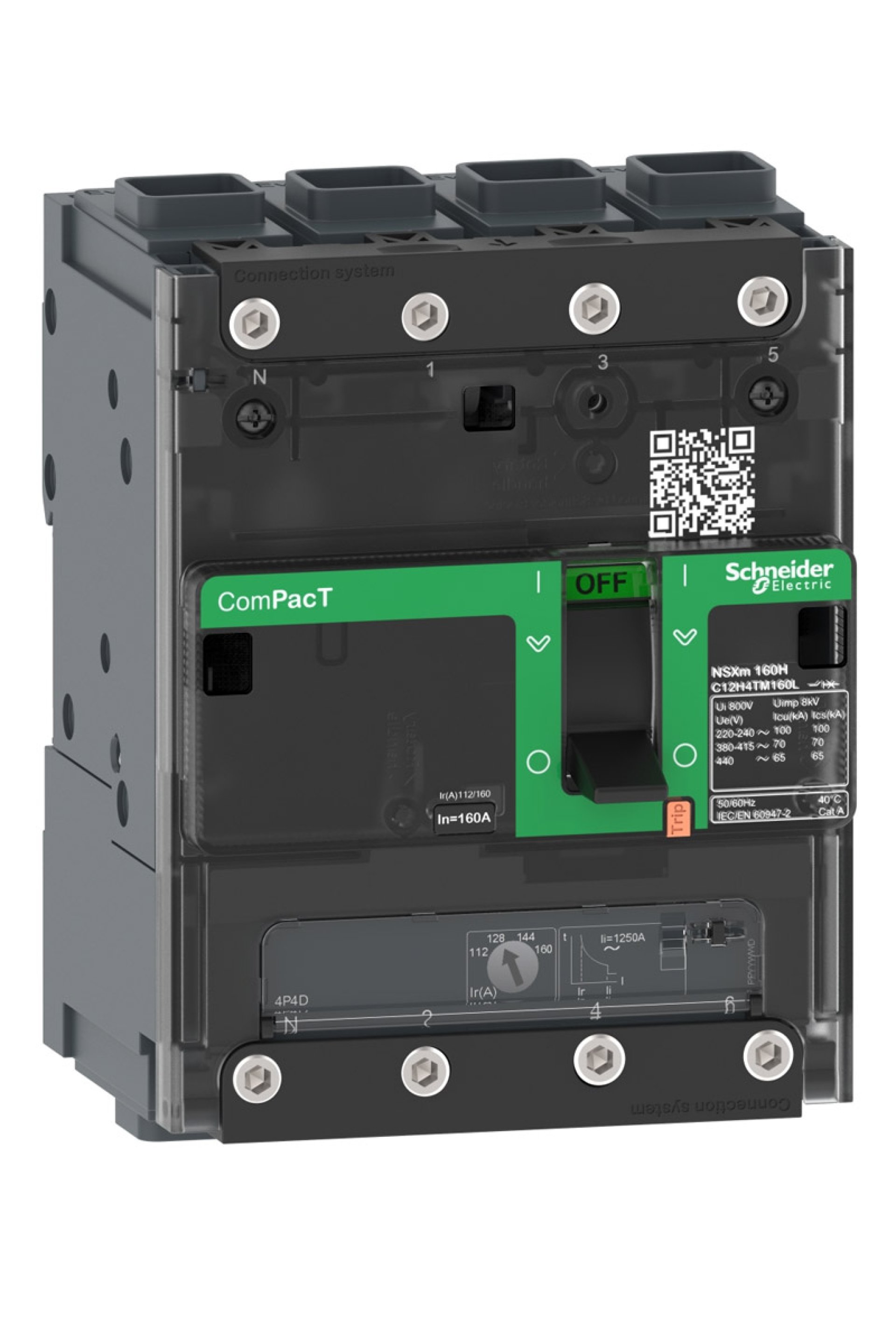 Schneider Kompakt Şalter Ürün Özellikleri Ürün adı : ComPacT NSXm new generation Ürün serisi : ComPacT NSXm new generation Ürün grubu : NSXm 160N Ürün ya da bileşen tipi : Devre kesici Cihaz uygulaması : Dağıtım Kutup tanımı : 4P Korumalı kutup açıklaması : 3d Nötr konum : Sol [In] nominal akım : 125 A -de 40 °C [Ue] nominal çalışma voltajı : 690 V AC 50/60 Hz Şebeke tipi : AC Şebeke frekansı : 50/60 Hz Yalıtıma uygunluk : Evet 'e uygun IEC 60947-2 Kullanım kategorisi : Kategori A [Icu] Anma nihai kısa devre kesme kapasitesi : 90 kA Icu -de 220...240 V AC 50/60 Hz 'e uygun IEC 60947-2 Performans seviyesi : N 50 kA 415 V AC Açma birimi adı : TM-D Açma birimi teknolojisi : Termik Manyetik Açma birimi koruma fonksiyonları : LI Kontrol tipi : Geçiş Devre kesici montaj modu : Sabit Tamamlayıcı Özellikler [Ui] nominal yalıtım voltajı : 800 V AC 50/60 Hz [Uimp] nominal darbe dayanım voltajı : 8 kV [Ics] Nominal hizmet kısa devre kesme kapasitesi : 90 kA -de 220...240 V AC 50/60 Hz 'e uygun IEC 60947-2 Mekanik dayanıklılık : 20000 döngü Elektrik dayanıklılığı : 20000 döngü -de 440 V In/2 Kutup başına güç dağılımı : 9,64 W Montaj desteği : Arka plaka Üst bağlantı : Ön Aşağı bağlantı : Ön Bağlantı terminalleri : 1 Everlink lug 2,5…70 mm², esnek bakır 1 Everlink lug 2,5…95 mm², rigid or stranded bakır Bağlantı aralığı : 35 mm ayırıcılarla 27 mm ayırıcılar olmadan 10 mm aralık : 12 modül Açma birimi derecesi : 125 A -de 40 °C Uzun süreli pick-up ayar tipi IR (termal koruma) : Ayarlanabilir [IR] Uzun süreli koruma toplama ayar aralığı : 0,7...1 x In Uzun Süreli Koruma Gecikme Ayarı Tipi TR : Sabit Nötr Koruma Ayarları : Korumasız (3d) Anlık Koruma Toplama Ayar Tipi II : Sabit [Ii] Anlık koruma başlatma ayar aralığı : 1.250 A Toprak kaçağı koruması : Yok Genişlik (w) : 108 mm Yükseklik (h) : 137 mm Derinlik (D) : 80 mm Ürün ağırlığı : 1,42 kg Renk : Gri (RAL 7016) Ortam Koşulları Standartlar : EN/IEC 60947 Kirletme derecesi : 3 'e uygun IEC 60664-1 IP koruma derecesi : IP40 'e uygun IEC 60529 IK koruma derecesi : IK07 'e uygun IEC 62262 Nominal çalışma ortam sıcaklığı : -25…70 °C Depolama ortam koşulları : -50…85 °C Bağıl nem : 0…95 % Çalışma yüksekliği : 2000 m değer kaybı olmadan 5000 m değer kaybı ile
