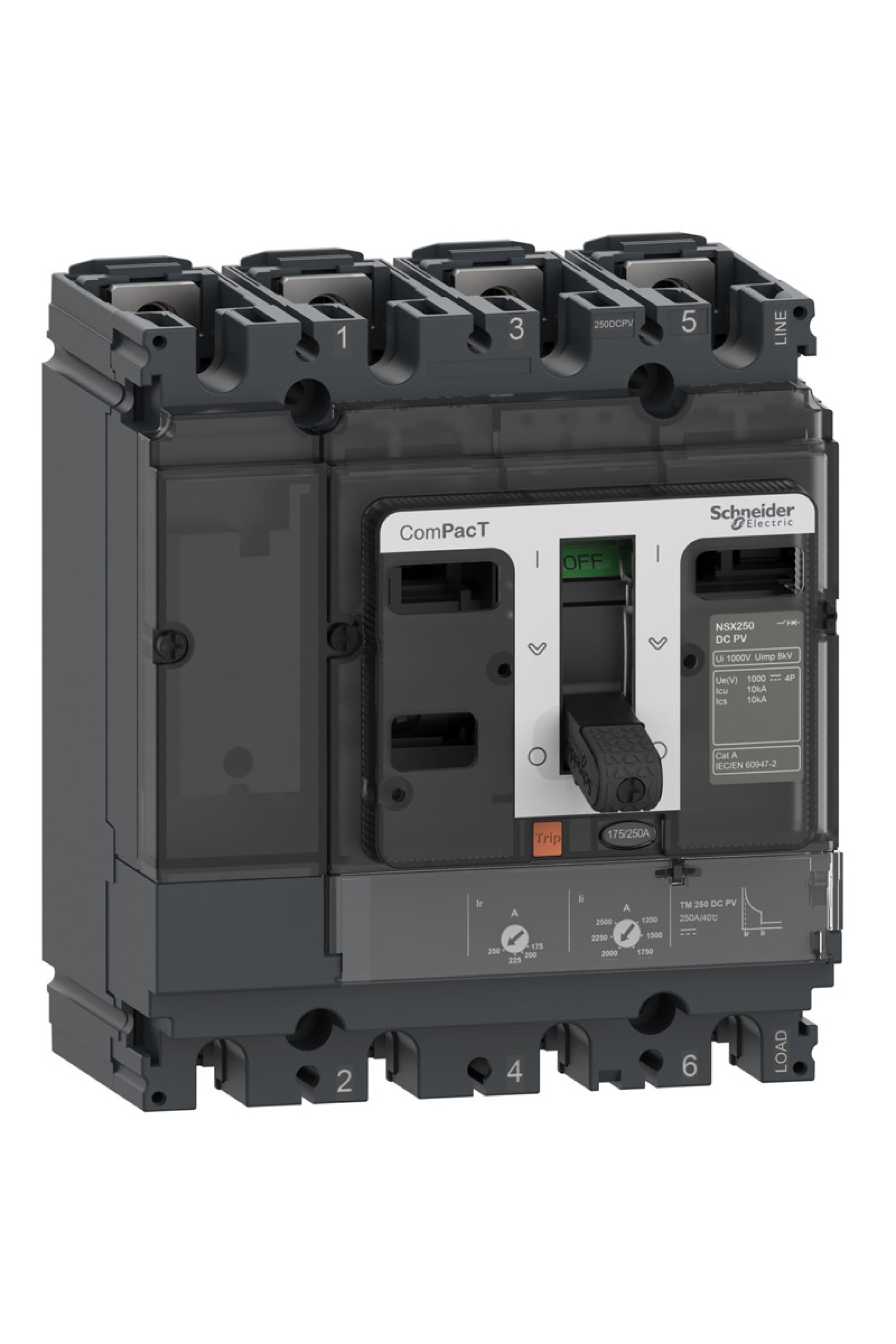 Schneider Kompakt Şalter Ürün Özellikleri Ürün adı : ComPacT NSX DC PV Ürün grubu : NSX160 DC PV Ürün ya da bileşen tipi : Devre kesici Cihaz uygulaması : Fotovoltaik Kutup tanımı : 4P [In] nominal akım : 160 A -de 40 °C [Ue] nominal çalışma voltajı : 1000 V DC Şebeke tipi : DC Kullanım kategorisi : Kategori A [Icu] Anma nihai kısa devre kesme kapasitesi : 10 kA Icu -de 1000 V DC seri olarak 4 kutup 'e uygunIEC 60947-2 Performans seviyesi : F 10 kA 1000 V DC Açma birimi adı : TM-DC Açma birimi teknolojisi : Termik Manyetik Açma birimi koruma fonksiyonları : LI Kontrol tipi : Geçiş Devre kesici montaj modu : Sabit Tamamlayıcı Özellikler [Ui] nominal yalıtım voltajı : 1000 V DC 'e uygun IEC 60947-2 [Uimp] nominal darbe dayanım voltajı : 8 kV 'e uygun IEC 60947-2 [Ics] Nominal hizmet kısa devre kesme kapasitesi : 10 kA -de 1000 V DC 'e uygun IEC 60947-2 Mekanik dayanıklılık : 10000 Döngü Elektrik dayanıklılığı : 1000 Döngüde 1000 V in Montaj desteği : Arka plaka Üst bağlantı : Ön Aşağı bağlantı : Ön Bağlantı aralığı : 35 mm Koruma tipi : L : for aşırı yük koruma (termik) Açma birimi derecesi : 160 A -de 40 °C Uzun süreli pick-up ayar tipi IR (termal koruma) : Ayarlanabilir [IR] Uzun süreli koruma toplama ayar aralığı : 0,7...1 x In Uzun Süreli Koruma Gecikme Ayarı Tipi TR : Sabit Anlık Koruma Toplama Ayar Tipi II : Sabit [Ii] Anlık koruma başlatma ayar aralığı : 1.250 A Toprak kaçağı koruması : Yok Genişlik (w) : 140 mm Yükseklik (h) : 161 mm Derinlik (D) : 186 mm Ürün ağırlığı : 2,8 kg Ortam Koşulları Standartlar : EN/IEC 60947 Ürün sertifikaları : CCC Aşırı gerilim kategorisi : Class II Elektrikli şok koruma sınıfı : Sınıf II Kirletme derecesi : 3 'e uygun IEC 60664-1 IP koruma derecesi : IP40 'e uygun IEC 60529 IK koruma derecesi : IK07 'e uygun IEC 62262 Nominal çalışma ortam sıcaklığı : -25…70 °C Depolama ortam koşulları : -50…85 °C Bağıl nem : 0…95 % Çalışma yüksekliği : 0...2000 m değer kaybı olmadan