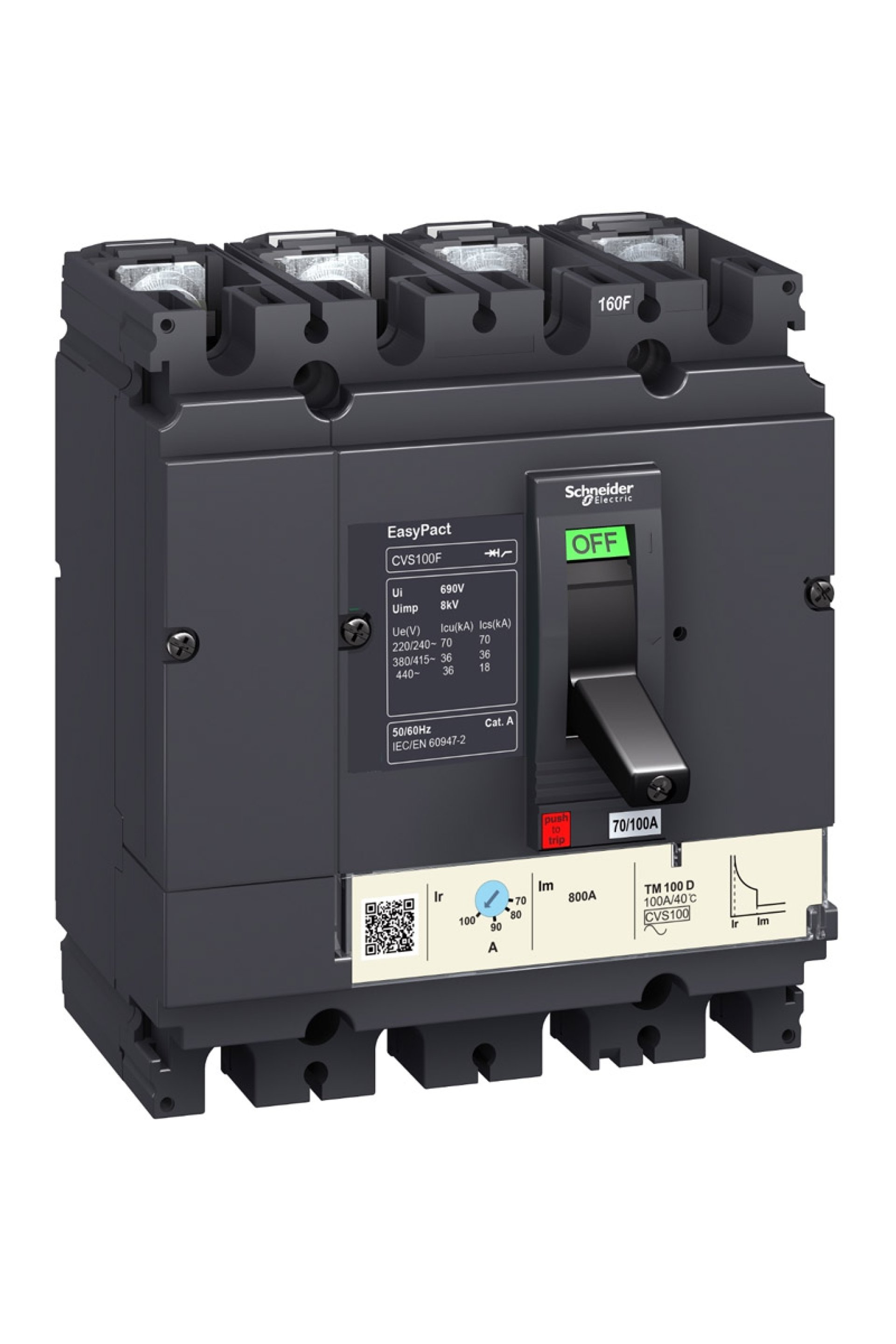 Schneider Kompakt Şalter Ürün Özellikleri Ürün serisi : Easypact CVS100...250 Ürün ya da bileşen tipi : Devre kesici Ürün grubu : CVS100B Cihaz uygulaması : Dağıtım Kutup tanımı : 4P Korumalı kutup açıklaması : 3d Nötr konum : Sol Earth leakage protection (Vigi add on) : Yok [In] nominal akım : 100 A -de 40 °C Derece kodu : B Şebeke tipi : AC [Icu] Breaking capacity : 40 kA Icu -de 220/240 V AC 50/60 Hz 'e uygunIEC 60947-2 Kullanım kategorisi : Kategori A Açma birimi adı : TM-D Açma birimi teknolojisi : Termik Manyetik Açma birimi derecesi : 100 A -de 40 °C Koruma türü : Aşırı yük koruma (termik) Kısa devre koruması (manyetik) Tamamlayıcı Özellikler Şebeke frekansı : 50/60 Hz Kontrol tipi : Geçiş Montaj Tipi : Sabit Montaj desteği : Arka plaka Üst bağlantı : Ön Aşağı bağlantı : Ön Bağlantılar - terminaller : Vidalı bağlantı [Uimp] nominal darbe dayanım voltajı : 8 kV 'e uygunEN/IEC 60947-2 Termik Koruma Ayar Aralığı : 70…100 A [Ics] nominal hizmet kesme kapasitesi : 15 kA -de 440 V AC 50/60 Hz 'e uygunIEC 60947-2 25 kA -de 380/415 V AC 50/60 Hz 'e uygunIEC 60947-2 40 kA -de 220/240 V AC 50/60 Hz 'e uygunIEC 60947-2 Mekanik dayanıklılık : 30000 cycles Elektrik dayanıklılığı : 12000 cycles 415 V In 'e uygunIEC 60947-2 Bağlantı aralığı : 35 mm Kontak konum göstergesi : Evet Nötr koruma ayarı : Korumasız (3d) Uzun süreli açma ayar tipi lr : Ayarlanabilir Uzun süreli açma ayar aralığı : 0,7...1 x In Uzun süreli gecikme ayarı tipi : Sabit Anlık açma ayar tipi li : Sabit Anlık açma ayar aralığı : 800 A Yükseklik : 161 mm Genişlik : 140 mm Derinlik : 86 mm Ürün ağırlığı : 2,2 kg Ortam Koşulları Elektrikli şok koruma sınıfı : Sınıf II Standartlar : EN 60947-2 IEC 60947-2 Ürün sertifikaları : GOST IEC IP koruma derecesi : IP40 Kirletme derecesi : 3 'e uygunIEC 60664-1 Nominal çalışma ortam sıcaklığı : -25…70 °C Depolama ortam koşulları : -50…85 °C
