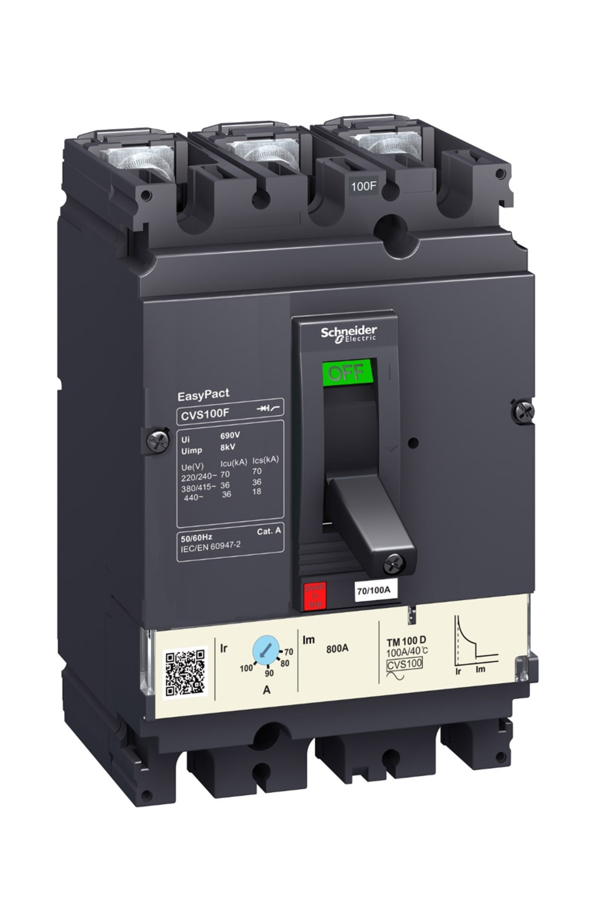 Schneider Kompakt Şalter Ürün Özellikleri Ürün serisi : Easypact CVS100...250 Ürün ya da bileşen tipi : Devre kesici Ürün grubu : CVS100F Cihaz uygulaması : Dağıtım Kutup tanımı : 3P Korumalı kutup açıklaması : 3d Earth leakage protection (Vigi add on) : Yok [In] nominal akım : 100 A -de 40 °C Derece kodu : F Şebeke tipi : AC [Icu] Breaking capacity : 36 kA Icu -de 440 V AC 50/60 Hz 'e uygunIEC 60947-2 Kullanım kategorisi : Kategori A Açma birimi adı : TM-D Açma birimi teknolojisi : Termik Manyetik Açma birimi derecesi : 63 A -de 40 °C Koruma türü : Kısa devre koruması (manyetik) Aşırı yük koruma (termik) Tamamlayıcı Özellikler Şebeke frekansı : 50/60 Hz Kontrol tipi : Geçiş Montaj Tipi : Sabit Montaj desteği : Arka plaka Üst bağlantı : Ön Aşağı bağlantı : Ön Bağlantılar - terminaller : Vidalı bağlantı [Uimp] nominal darbe dayanım voltajı : 8 kV 'e uygunEN/IEC 60947-2 Termik Koruma Ayar Aralığı : 44,1…63 A [Ics] nominal hizmet kesme kapasitesi : 18 kA -de 440 V AC 50/60 Hz 'e uygunIEC 60947-2 36 kA -de 380/415 V AC 50/60 Hz 'e uygunIEC 60947-2 70 kA -de 220/240 V AC 50/60 Hz 'e uygunIEC 60947-2 Mekanik dayanıklılık : 30000 cycles Elektrik dayanıklılığı : 12000 cycles 415 V In 'e uygunIEC 60947-2 Bağlantı aralığı : 35 mm Kontak konum göstergesi : Evet Uzun süreli açma ayar tipi lr : Ayarlanabilir Uzun süreli açma ayar aralığı : 0,7...1 x In Uzun süreli gecikme ayarı tipi : Sabit Anlık açma ayar tipi li : Sabit Anlık açma ayar aralığı : 500 A Yükseklik : 161 mm Genişlik : 105 mm Derinlik : 86 mm Ürün ağırlığı : 1,8 kg Ortam Koşulları Elektrikli şok koruma sınıfı : Sınıf II Standartlar : EN 60947-2 IEC 60947-2 Ürün sertifikaları : GOST IEC IP koruma derecesi : IP40 Kirletme derecesi : 3 'e uygunIEC 60664-1 Nominal çalışma ortam sıcaklığı : -25…70 °C Depolama ortam koşulları : -50…85 °C