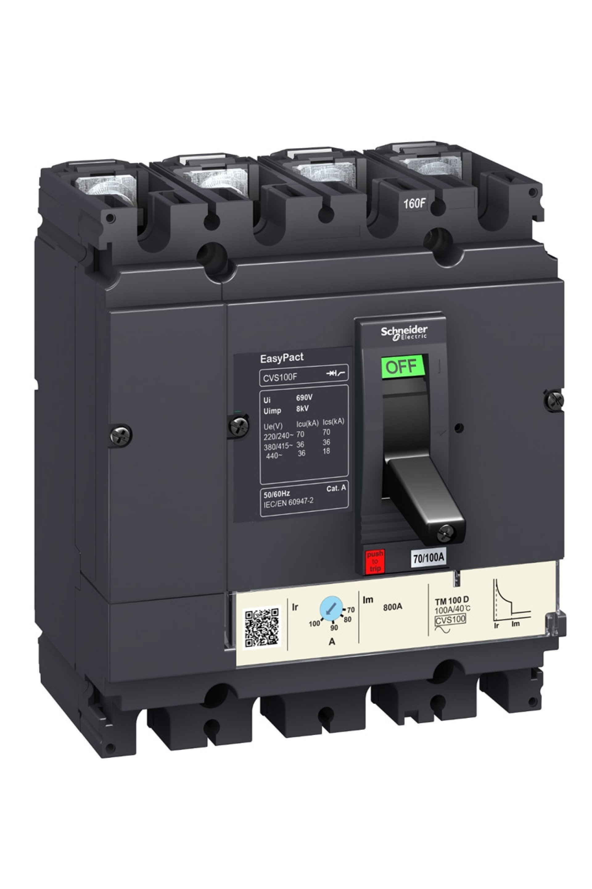Schneider Kompakt Şalter Ürün Özellikleri Ürün serisi : Easypact CVS100...250 Ürün ya da bileşen tipi : Devre kesici Ürün grubu : CVS100F Cihaz uygulaması : Dağıtım Kutup tanımı : 4P Korumalı kutup açıklaması : 3d Nötr konum : Sol Earth leakage protection (Vigi add on) : Yok [In] nominal akım : 100 A -de 40 °C Derece kodu : F Şebeke tipi : AC [Icu] Breaking capacity : 36 kA Icu -de 440 V AC 50/60 Hz 'e uygunIEC 60947-2 Kullanım kategorisi : Kategori A Açma birimi adı : TM-D Açma birimi teknolojisi : Termik Manyetik Açma birimi derecesi : 40 A -de 40 °C Koruma türü : Aşırı yük koruma (termik) Tamamlayıcı Özellikler Şebeke frekansı : 50/60 Hz Kontrol tipi : Geçiş Montaj Tipi : Sabit Montaj desteği : Arka plaka Üst bağlantı : Ön Aşağı bağlantı : Ön Bağlantılar - terminaller : Vidalı bağlantı [Uimp] nominal darbe dayanım voltajı : 8 kV 'e uygunEN/IEC 60947-2 Termik Koruma Ayar Aralığı : 28…40 A [Ics] nominal hizmet kesme kapasitesi : 18 kA -de 440 V AC 50/60 Hz 'e uygunIEC 60947-2 Mekanik dayanıklılık : 30000 cycles Elektrik dayanıklılığı : 12000 cycles 415 V In 'e uygunIEC 60947-2 Bağlantı aralığı : 35 mm Kontak konum göstergesi : Evet Nötr koruma ayarı : Korumasız (3d) Uzun süreli açma ayar tipi lr : Ayarlanabilir Uzun süreli açma ayar aralığı : 0,7...1 x In Uzun süreli gecikme ayarı tipi : Sabit Anlık açma ayar tipi li : Sabit Anlık açma ayar aralığı : 500 A Yükseklik : 161 mm Genişlik : 140 mm Derinlik : 86 mm Ürün ağırlığı : 2,2 kg Ortam Koşulları Elektrikli şok koruma sınıfı : Sınıf II Standartlar : EN 60947-2 IEC 60947-2 Ürün sertifikaları : GOST IEC IP koruma derecesi : IP40 Kirletme derecesi : 3 'e uygunIEC 60664-1 Nominal çalışma ortam sıcaklığı : -25…70 °C Depolama ortam koşulları : -50…85 °C