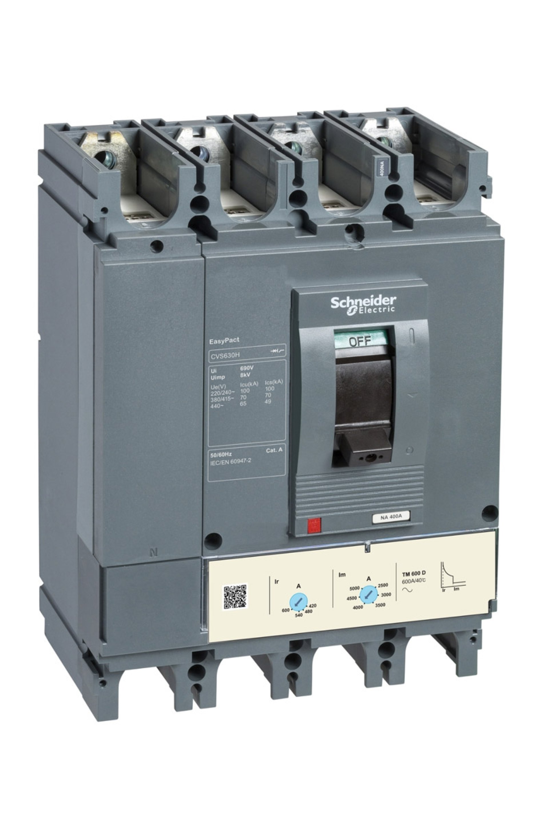 Schneider Kompakt Şalter Ürün Özellikleri Ürün serisi : Easypact CVS400...630 Ürün ya da bileşen tipi : Devre kesici Ürün grubu : CVS400N Cihaz uygulaması : Dağıtım Kutup tanımı : 4P Korumalı kutup açıklaması : 3d Nötr konum : Sol Earth leakage protection (Vigi add on) : Yok [In] nominal akım : 400 A -de 40 °C Derece kodu : N Şebeke tipi : AC [Icu] Breaking capacity : 70 kA Icu -de 220/240 V AC 50/60 Hz 'e uygunIEC 60947-2 Kullanım kategorisi : Kategori A Açma birimi adı : TM-D Açma birimi teknolojisi : Termik Manyetik Açma birimi derecesi : 320 A -de 40 °C Koruma türü : Kısa devre koruması (manyetik) Tamamlayıcı Özellikler Şebeke frekansı : 50/60 Hz Kontrol tipi : Geçiş Montaj Tipi : Sabit Montaj desteği : Arka plaka Üst bağlantı : Ön Aşağı bağlantı : Ön Bağlantılar - terminaller : Vidalı bağlantı [Uimp] nominal darbe dayanım voltajı : 8 kV 'e uygunEN/IEC 60947-2 Termik Koruma Ayar Aralığı : 224…320 A [Ics] nominal hizmet kesme kapasitesi : 70 kA -de 220/240 V AC 50/60 Hz 'e uygunIEC 60947-2 Mekanik dayanıklılık : 15000 cycles Elektrik dayanıklılığı : 6000 cycles 415 V In 'e uygunIEC 60947-2 Bağlantı aralığı : 45 mm Kontak konum göstergesi : Evet Nötr koruma ayarı : Korumasız (3d) Uzun süreli açma ayar tipi lr : Ayarlanabilir Uzun süreli açma ayar aralığı : 0,7...1 x In Uzun süreli gecikme ayarı tipi : Sabit Anlık açma ayar tipi li : Ayarlanabilir Anlık açma ayar aralığı : 5...10 x In Yükseklik : 255 mm Genişlik : 185 mm Derinlik : 110 mm Ürün ağırlığı : 6,3 kg Ortam Koşulları Elektrikli şok koruma sınıfı : Sınıf II Standartlar : EN 60947-2 IEC 60947-2 Ürün sertifikaları : GOST IEC IP koruma derecesi : IP40 Kirletme derecesi : 3 'e uygunIEC 60664-1 Nominal çalışma ortam sıcaklığı : -25…70 °C Depolama ortam koşulları : -50…85 °C