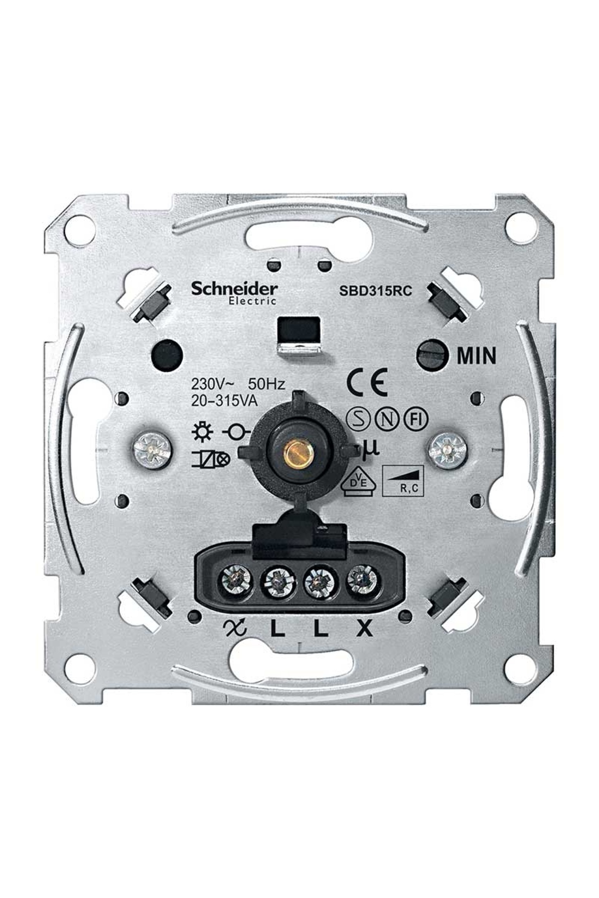 Schneider Electric Fiş ve Priz Aksesuarları Ürün Özellikleri Seri : Merten Ürün ya da bileşen tipi : Dimmer Cihaz sunumu : Sabitleme çerçeveli mekanizma Tamamlayıcı Özellikler Cihaz Montajı : Sıva altı Sabitleme Modu : Vidalar ve tırnaklarla Anahtar fonksiyonu : C/O push buton Karartıcı kontrol : Döner basmalı tip Yük tipi : Kapasitif: 20...300 W [Ue] Nominal Çalışma Voltajı : 230 V AC 50/60 Hz Nominal çalışma ortam sıcaklığı : -5…45 °C IP koruma derecesi : IP20 Yükseklik : 71 mm Genişlik : 71 mm Gömme derinliği : 29 mm Standartlar : EN 60669-2-1