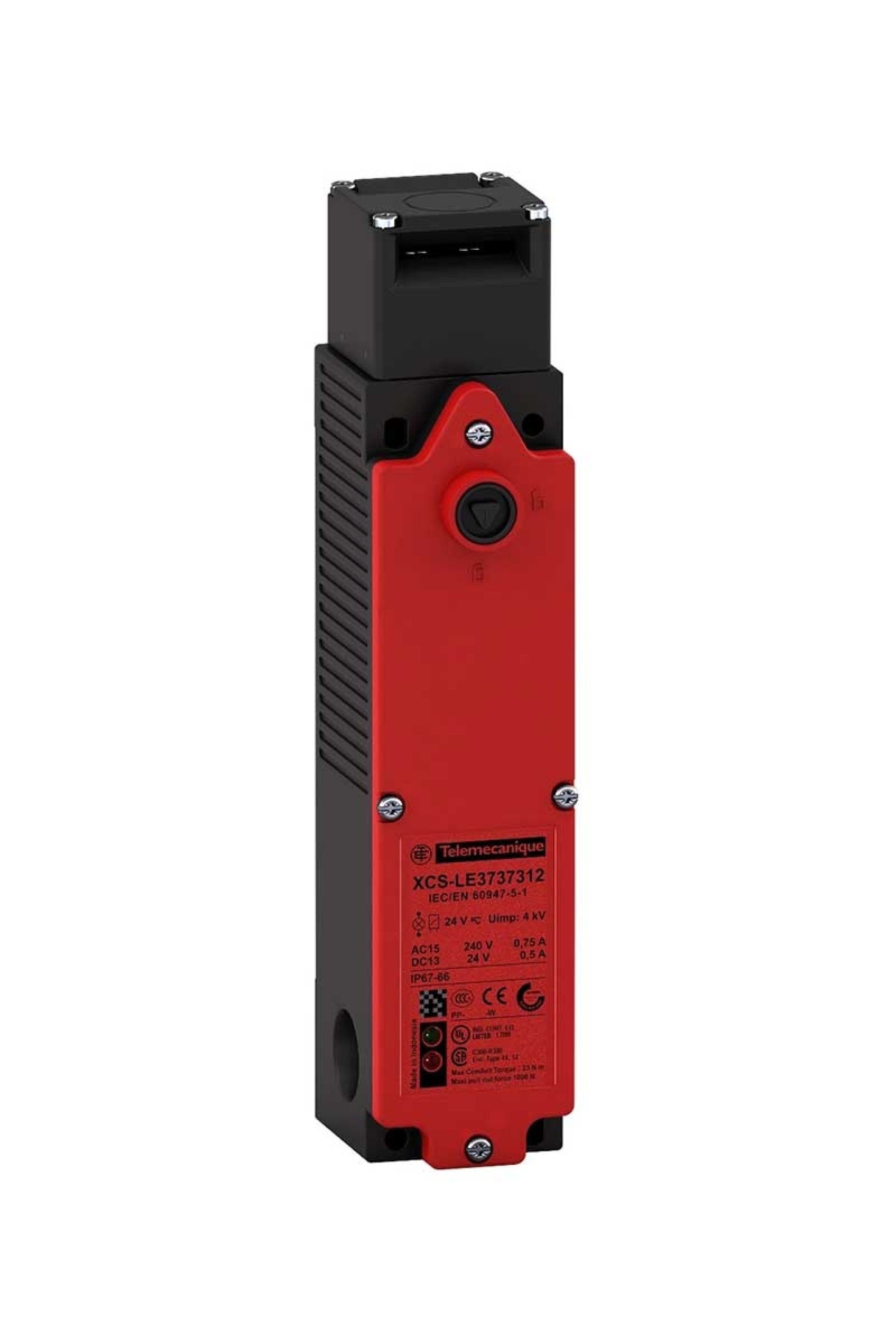 Telemecanique Sensors Emniyet Şalteri Ürün Özellikleri Ürün ya da bileşen tipi : Güvenlik anahtarı Bileşen adı : XCSLE Malzeme : Plastik Başlık tipi : Anahtarla çalıştırılan torna başlık Kontak tipi ve düzenleme : 1 NK + 1 NA Kontak işlemi : Yavaş kesen, önce açan sonra kapayan Solenoid kontak tipi ve düzenleme : 1 NK + 1 NA (yavaş kesen, önce açan sonra kapayan) Kablo girişi : 3 giriş tapped için M20 x 1,5 Elektromanyetik kilitleme : Enerji kesildiğinde kilitlenme ve solenoide enerji geldiğinde kilidin açılması [Us] solenoid rated supply voltage : 24 V - 15...10 % Kablo dış çapı : 7…13 mm Elektrikli bağlantı : Yaylı terminal, kelepçeleme kapasitesi: 1 x 1.5 mm² esnek veya katı kablo Kutupların sayısı : 2 Kilitleme seçenekleri tanımı : Birbirine kilitlemeli, solenoidle kilitlemeyle Yerel sinyalleme : Aktüatör geri çekildi: 1 LED (turuncu) Sinyalleme devre gerilimi : 24 V Tamamlayıcı Özellikler Yalıtım : Çift yalıtımlı Pozitif açıklık : NK kontak ile Besleme gerilim tipi : AC/DC Besleme frekansı : 50/60 Hz Yük faktörü : 1 Sinyalleme devre tipi : AC/DC Mekanik dayanıklılık : 1000000 döngü Minimum çalıştırma hızı : 0,01 m/s Maksimum çalıştırma hızı : 0,5 m/s [Ithe] klasik muhafazalı termik akım : 4 A Maksimum yük akımı : <= 15 A [Ui] nominal yalıtım voltajı : 300 V 'e uygunUL 508 [Uimp] nominal darbe dayanım voltajı : 4 kV 'e uygunEN/IEC 60947-5-1 Minimum anahtarlama akımı : 10 mA 20 °C'de Minimum Anahtarlam gerilimi : 17 V Kisa devre korumasi : 4 A kartuş sigortası tip gG (gl) Maksimum Aktüatör Zorla Çekme RTC : 1400 N Ekstraksiyon için minimum aktüatör kuvveti : 20 N Mekanik darbeye direnç : 1,2 J bölmeye karşı 4,9 J bölme olmadan Maksimum işletim oranı : 10 cyc/mn maksimum dayanıklılık için Güvenlik seviyesi : Kategori 4'e erişebilir uygun izleme sistemi ve doğru kablolarla 'e uygunEN/ISO 13849-1 PL = e değerine erişebilir uygun izleme sistemi ve doğru kablolarla 'e uygunEN/ISO 13849-1 SIL 3'e erişebilir 'e uygunEN/IEC 61508 Güvenlik güvenilirlik verisi : B10d = 5500000 20 yıllık verilen servis ömrü, mekanik veya kontak aşınması ile sınırlanır Gövde malzemesi : PA (polyamid) Başlık malzemesi : PA (polyamid) Derinlik : 51 mm Yükseklik : 205 mm Genişlik : 44 mm Ürün ağırlığı : 0,53 kg Ortam Koşulları Standartlar : EN/IEC 60204-1 CSA C22.2 No 14 EN/IEC 62061 UL 508 EN/ISO 13849-1 EN/IEC 60947-5-1 EN 1088/ISO 14119 Ürün sertifikaları : TÜV UL CSA Koruyucu bakım : TC Nominal çalışma ortam sıcaklığı : -25…60 °C Depolama ortam koşulları : -40…70 °C Titreşim direnci : 5 gn (f= 10…500 Hz) 'e uygun IEC 60068-2-6 Darbe dayanımı : 10 gn için 11 ms 'e uygunIEC 60068-2-27 Elektrik çarpmasına karşı koruma sınıfı : Sınıf II 'e uygunEN/IEC 61140