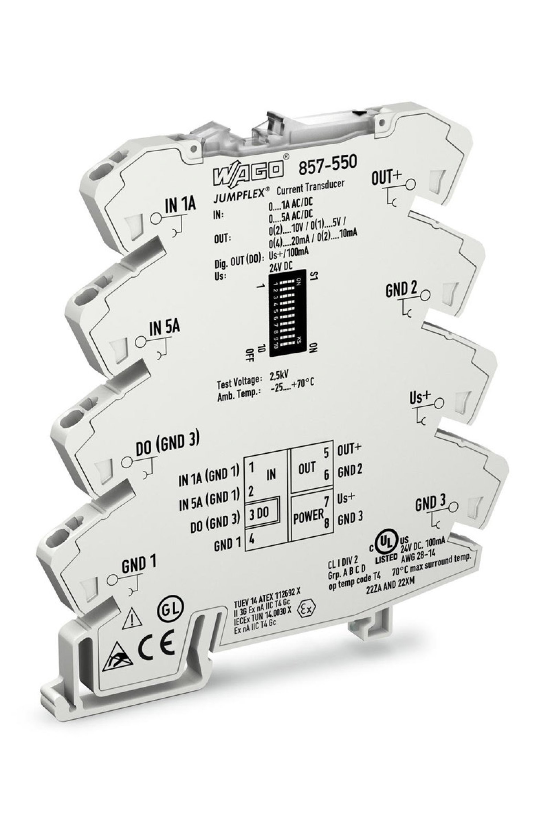 Wago Dönüştürücüler Not:Bu ürünün garanti süresi 2 yıldır. Teknik Veri Konfigürasyon Yapılandırma Seçenekleri : DIP anahtarlar Giriş Giriş sinyali tipi : Akım Giriş sinyali, akım : AC/DC 0 … 1 A (IN 1); AC/DC 0 … 5 A (IN 2) Frekans aralığı : 16 … 400 Hz Giriş Direnci (Giriş/Akım) : 47 mΩ (IN 1); 10 mΩ (IN 2) Maks. giriş sinyali : 10 A (1'de; 5s) 15 A (2'de; 5s) Yanıt eşiği : < % 0,5 (Ölçüm Aralığı Nominal Değerinin) Çıkış Çıkış sinyal türü : Akım Gerilim Çıkış sinyali voltajı : 0 … 5 V 1 … 5 V 0 … 10 V 2 … 10 V Çıkış sinyali akımı : 0 … 10 mA 2 … 10 mA 0 … 20 mA 4 … 20 mA Yük Empedansı (Çıkış/Voltaj) : ≥ 2 kΩ (Sıcaklık Aralığı Kısıtlamaları Olabilir) Yük Empedansı (Çıkış/Akım) : ≤ 600 Ω (Sıcaklık Aralığı Kısıtlamaları Olabilir) Çıkış - Dijital Maks. Anahtarlama Voltajı (DO) : Uygulanan besleme gerilimi Maks. Sürekli Akım (DO) : 100 mA (dahili kısıtlama yok) Anahtarlama Sınır Sayısı (DO) : 1 (Ayarlanabilir) Sinyal İşleme Ölçme Prosedürü : Hakiki RMS ölçümü veya aritmetik ortalama değer FILTRE (T 10-90 ) : Hareketli Ortalama Değer (Filtreleme Seviyesi: 30) Adım Tepki Tip. : 60 ms Ölçüm Hatası İletim hatası : ≤ % 0.1 üst aralık değerinin İletim hatası (tam skala) : ≤ 0.4 % of upper range value Sıcaklık Katsayısı : ≤ %0,01 /K Güç Kaynağı Güç Kaynağı Türü : 24 VDC Nominal Besleme Gerilimi U S : DC 24 V Tedarik Voltaj Aralığı : ±30 % Tedarik Voltajında Mevcut Tüketim : ≤ 40 mA (+ I DO) Güvenlik Ve Koruma Koruma Sınıfı : IP20 Test Voltajı Test voltajı (giriş / çıkış / besleme) : AC 2,5 kV; 50 Hz; 1 dakika Bağlantı Verisi Bağlantı Teknolojisi : CAGE CLAMP ® S Tek Damarlı Boylar : 0,08 … 2,5 mm² / 28 … 14 AWG İnce Bükümlü Kablolar : 0,34 … 2,5 mm² / 22 … 14 AWG Sıyırma Uzunluğu : 9 … 10 mm Geometrik Veriler Genişlik : 6 mm Yükseklik : 94 mm Din-35 Rayının Üst Kenarından Uzunluk : 97,8 mm Mekanik Veriler Montaj Tipi : DIN 35 Ray Malzeme Verileri Ağırlık : 64 g Çevresel Gereklilikler Çevreleyen Hava (Çalışma) Sıcaklığı : -25 … +70 °C (Nominal Akımda) Çevreleyen Hava (Depolama) Sıcaklığı : -40 … +85 °C Bağıl Nem : 5 … 95 % (Yoğunlaşmaya İzin Verilmez) Maks. Çalışma Yüksekliği : 2000 m Standartlar/Spesifikasyonlar Uygunluk İşareti : CE